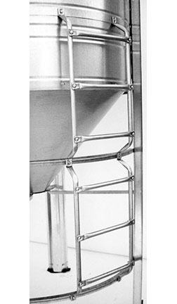Ladder permanently attached; plenty of space between rungs and side of bin for firm footing; no flimsy angle iron steps.